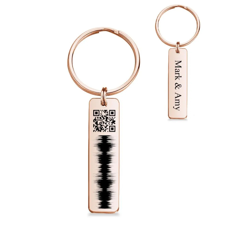 Custom Engraved QR code Keychain Scannable Code Sonic Audio Technology Gift Rose Gold