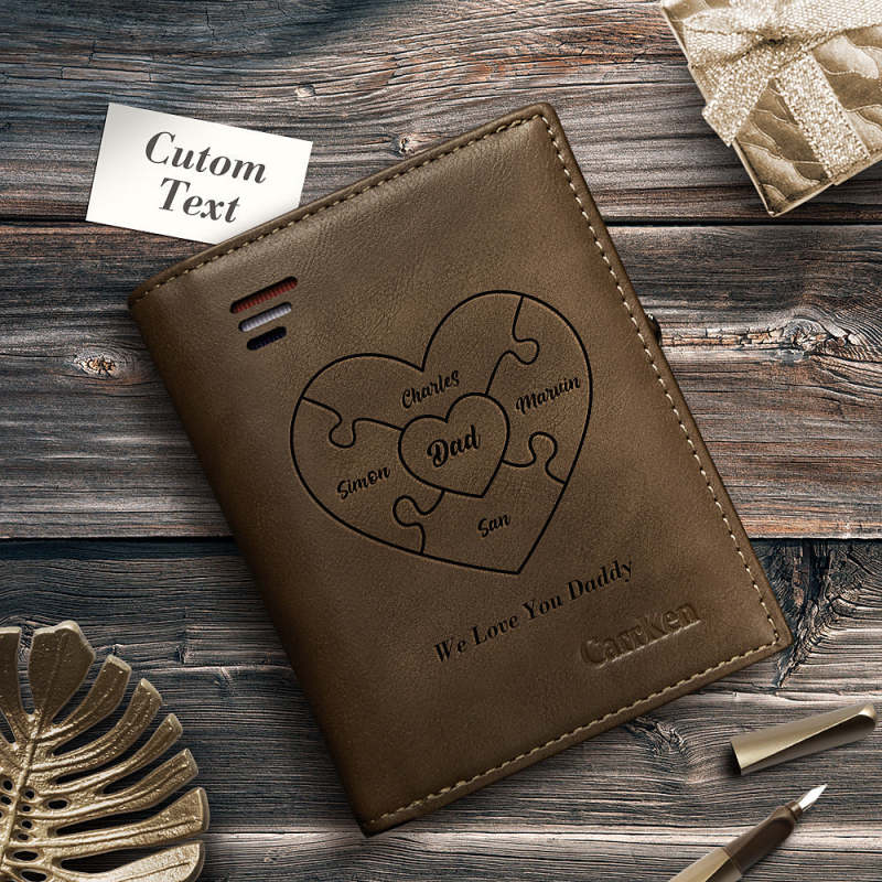 Engrave your family's name on the wallet. It will be a very commemorative gift. Advanced fabric and the classic design make the wallet even more stylish. The design is very traditional, the size is perfect, the details are very gorgeous, really has the appearance of a high-end wallet. Once you place an order, you'll be able to preview how it will appear on the wallet. This wallet is a great father's Day Gift.