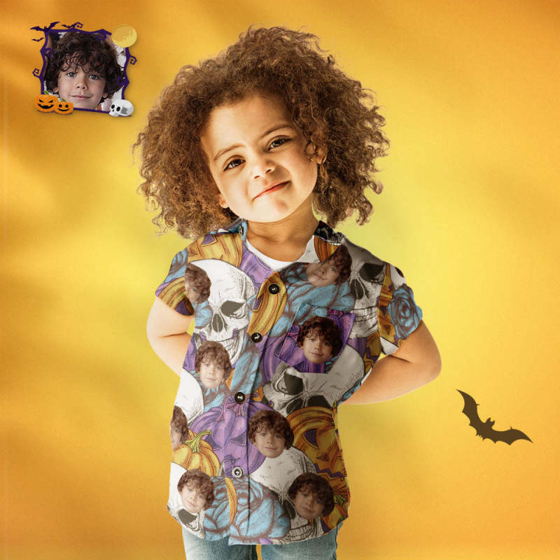 Custom Face Funny Pumpkin & Skull Print Family Matching Hawaiian Outfit