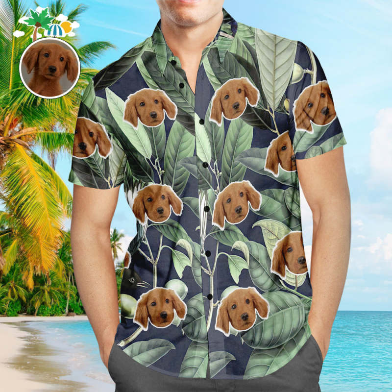 Custom Face Hawaiian Shirt Tropical Green Leaves Men's Popular All Over Print Hawaiian Beach Shirt Holiday Gift