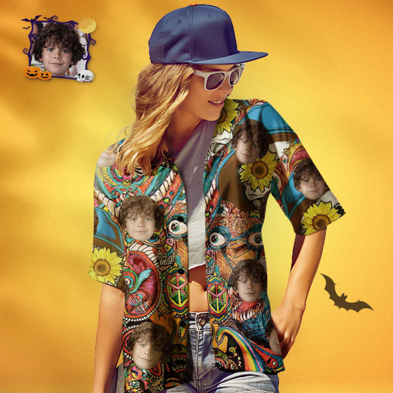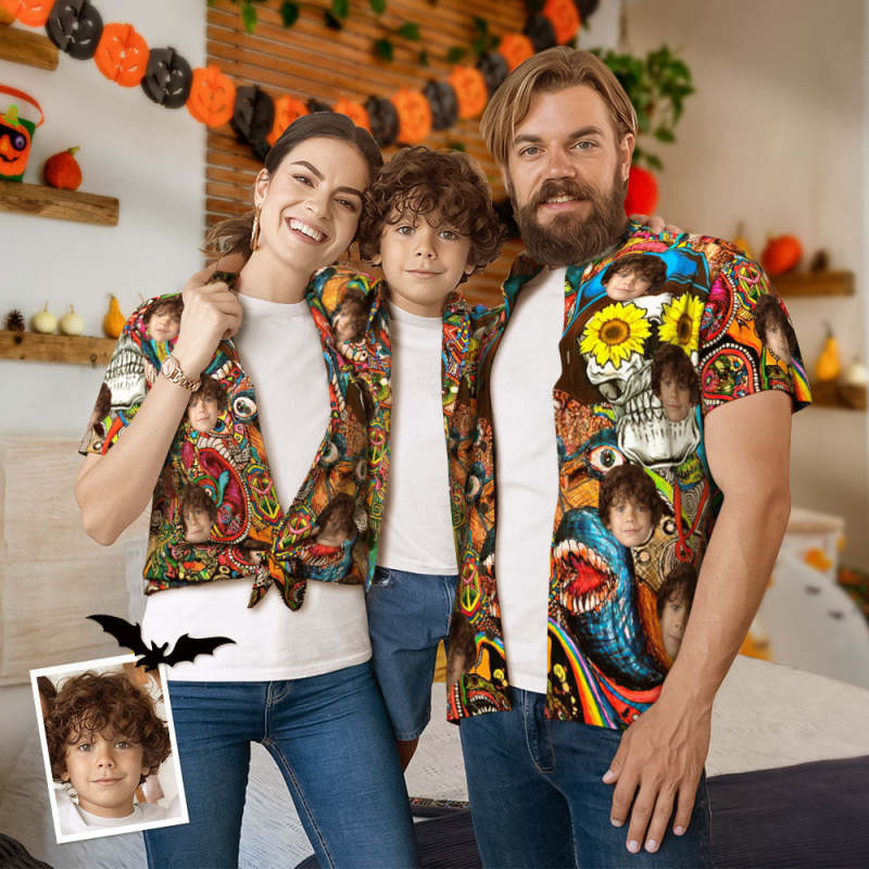 Custom Face Matching Family Hawaiian Outfit Skull Flower Print Gift for Family