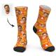 Custom Face Socks Personalized Photo Socks Christmas Gift Orange Santa Socks - Snowflake And Christmas Tree