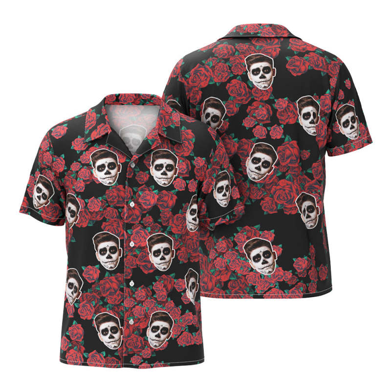Custom Funny Face Hawaiian Shirt Halloween Photo Shirt Black Rose Halloween Drama Gift