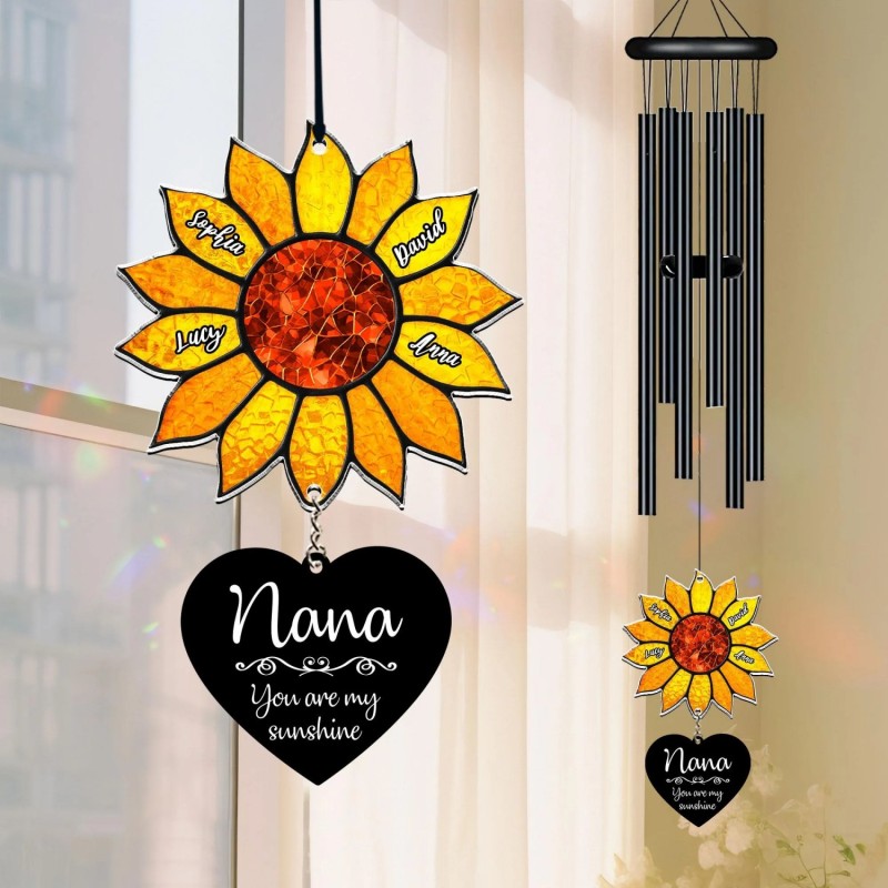 This "You Are My Sunshine" sunflower wind chime is a heartwarming personalized gift for Grandma. Customizable with grandkids' names and adorned with sunflowers, its gentle chimes carry the loving presence of family. More than a decorative piece, it symbolizes the bond between generations, reminding Grandma that she is the cherished sunshine that brightens every day.