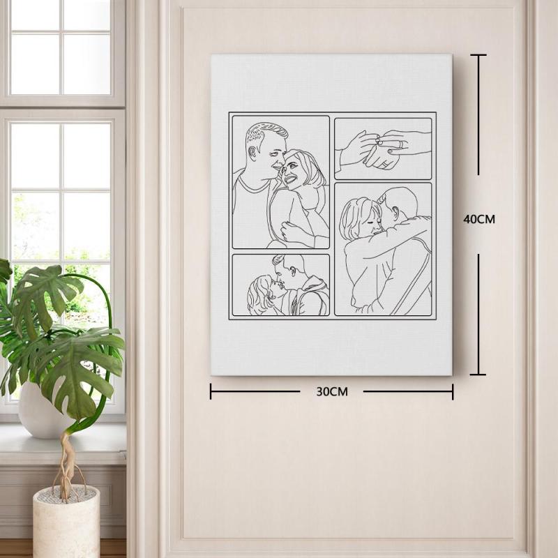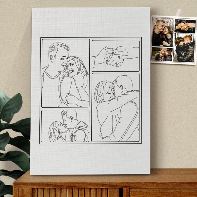 Custom Line Art Canvas Painting with Your Photo, Wall Art Gift for Couples