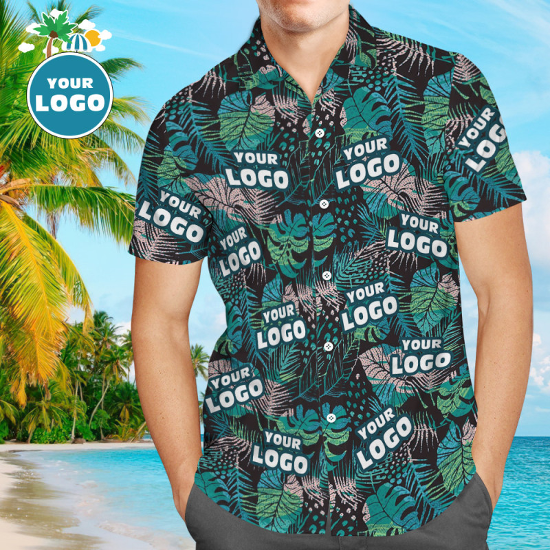Custom Logo Hawaiian Shirts Summer Leaves Personalized Aloha Beach Shirt For Men