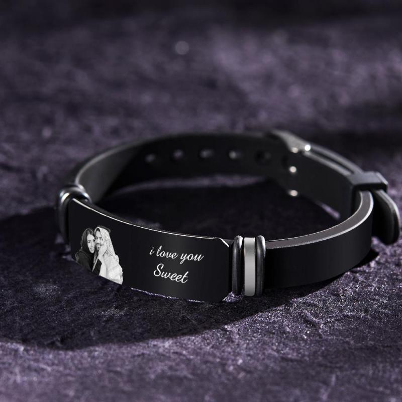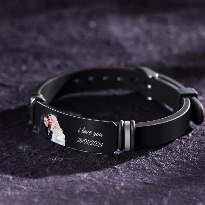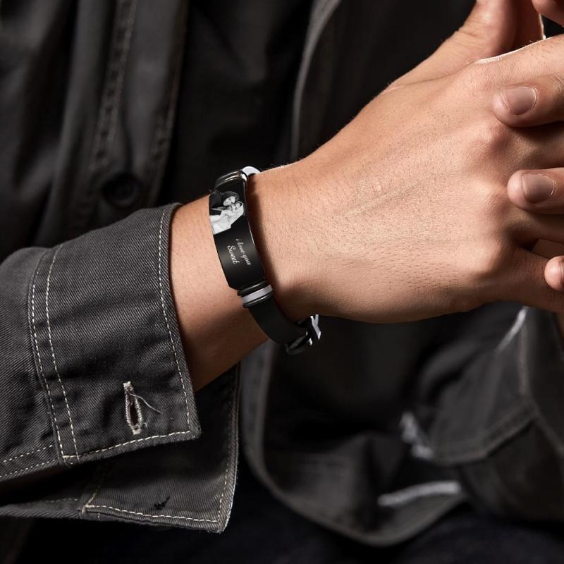 اجعل يوم من تحب مميزًا حقًا مع السوار الأسود المنقوش بالصور المخصصة للرجال. إنها ليست مجرد إكسسوار؛ إنها شهادة يمكن ارتداؤها على الحب واللحظات العزيزة التي سيتم تقديرها مدى الحياة.