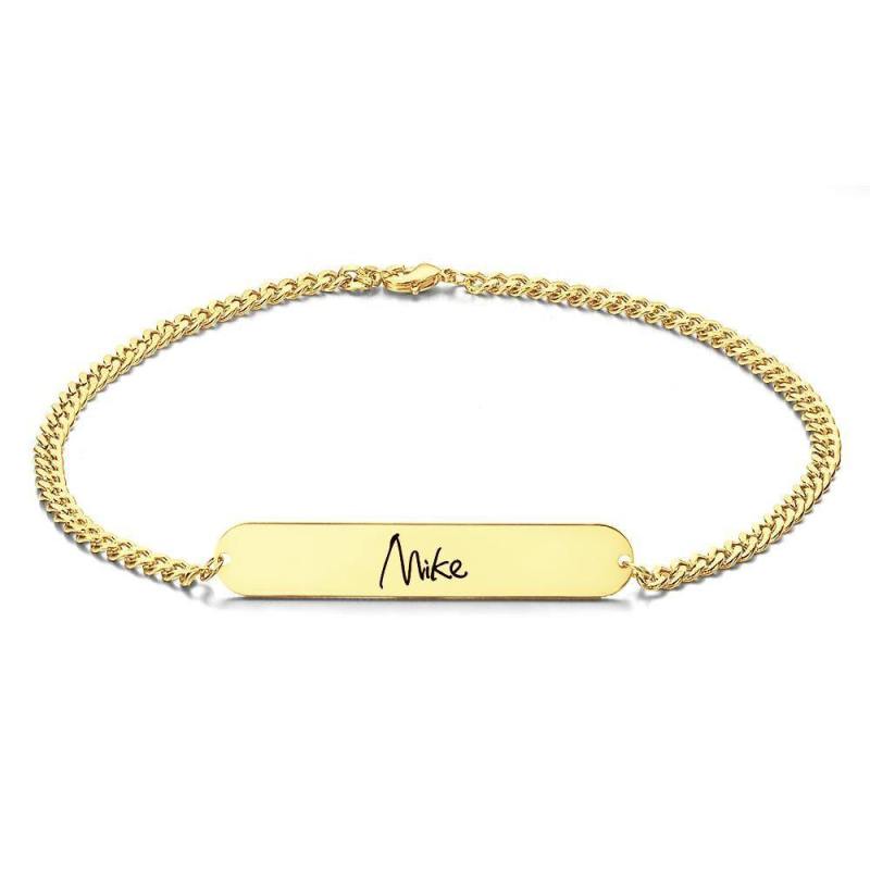 This beautiful bracelet can be personalized with names, initials, dates, phrases, roman numerals or coordinates. Engraved with dates or coordinates it's very popular gift for bridesmaids, personalized with kids or grand kids names perfect Christmas gift for your husband, boyfriend. Custom Men's Bracelet Chain Bracelet with Individual Name Engraving Gift Partner Bracelet - Gold Plated