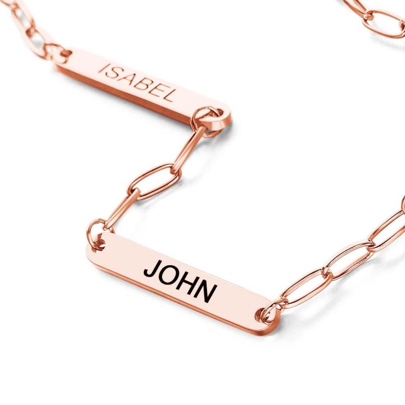 Personalize this bar bracelet with any names or words that are special to you. The paperclip bracelet chain can be accented with multiple charms to create the perfect customized gift.