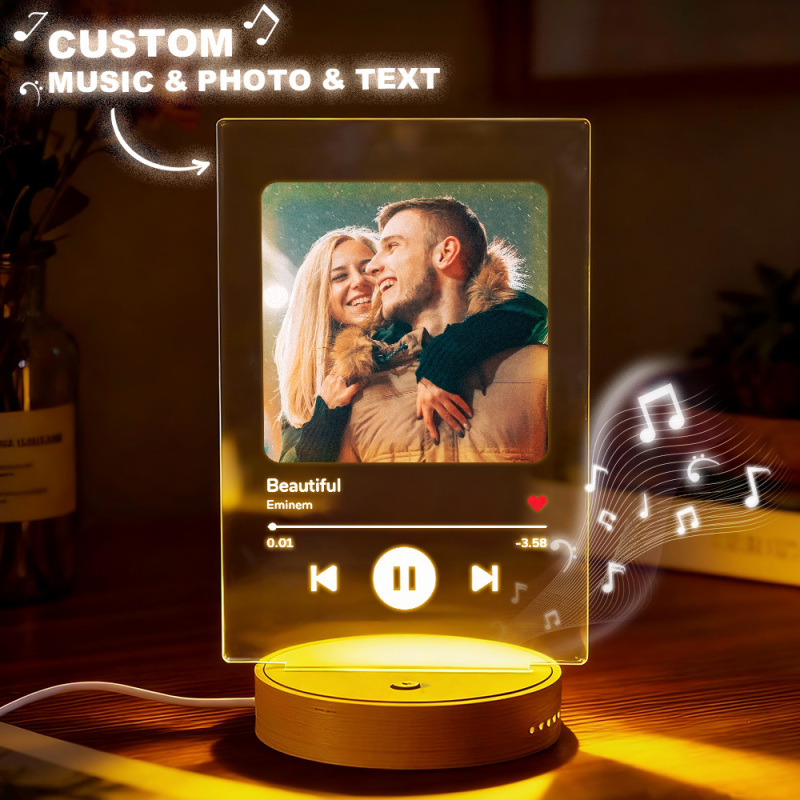 Forget QR codes and apps - this is a new level of personalization. With just one press of a button on the wooden base, your chosen song begins to play, and the soft lighting turns on. It’s not just decor - it’s your memory, your song, and your love, captured forever in sound and light.