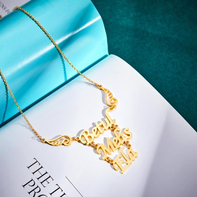 Custom Name Necklace Angel Wings Pendant Necklace Birthday Gift for Women