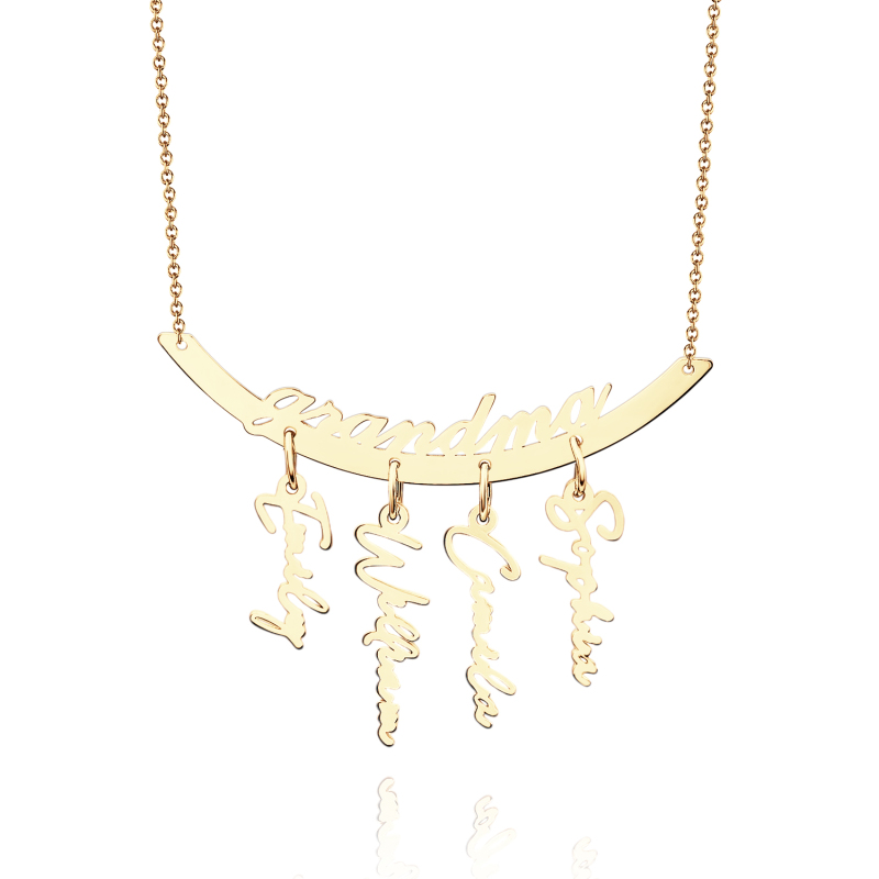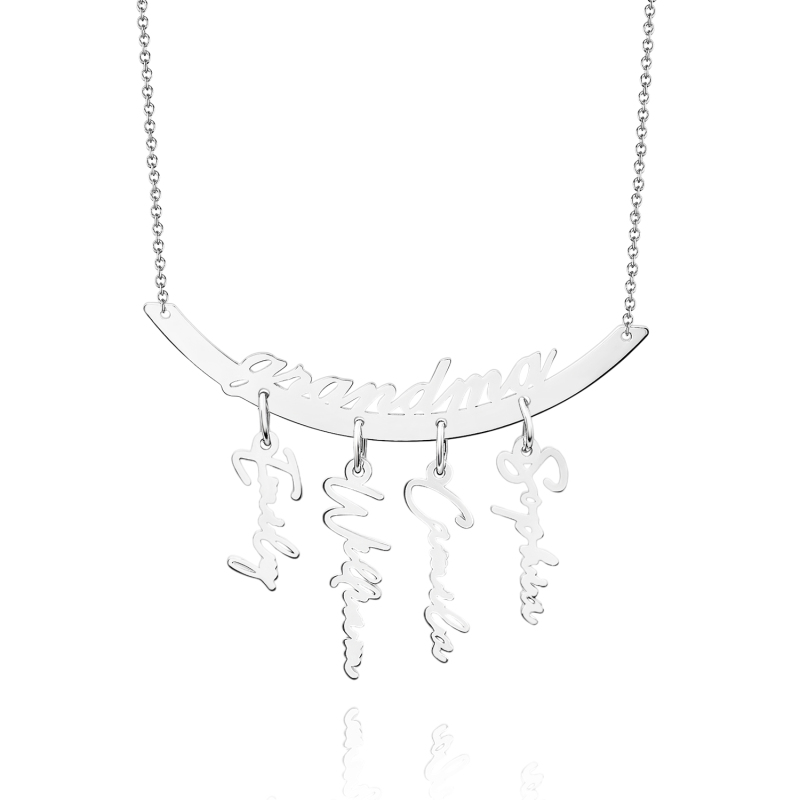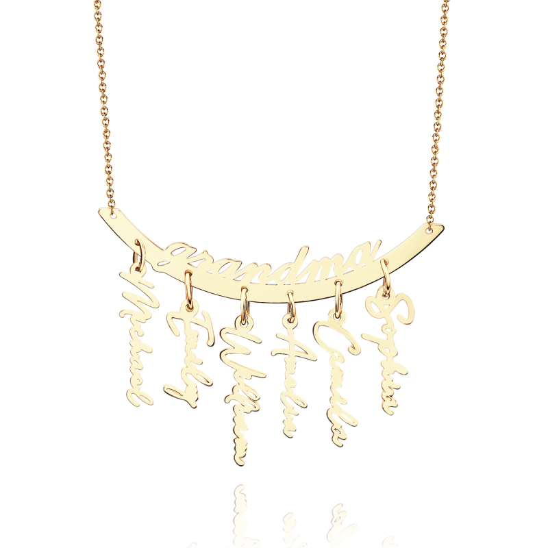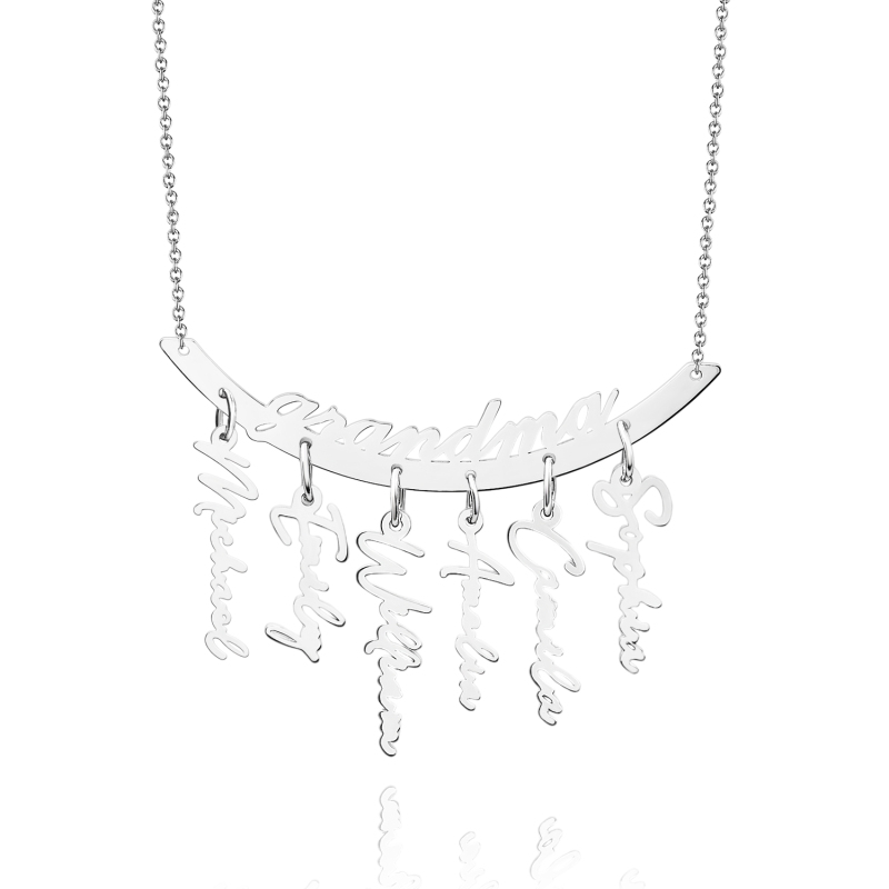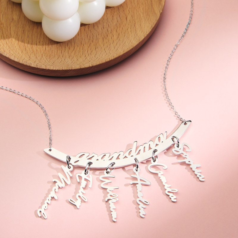 Celebrate your loved ones with this personalized hanging family necklace. Customizable with 1 to 7 name pendants, it makes a heartfelt gift for Grandma or Mother’s Day. Crafted to showcase your family's unique bond, it’s a perfect keepsake for any occasion.