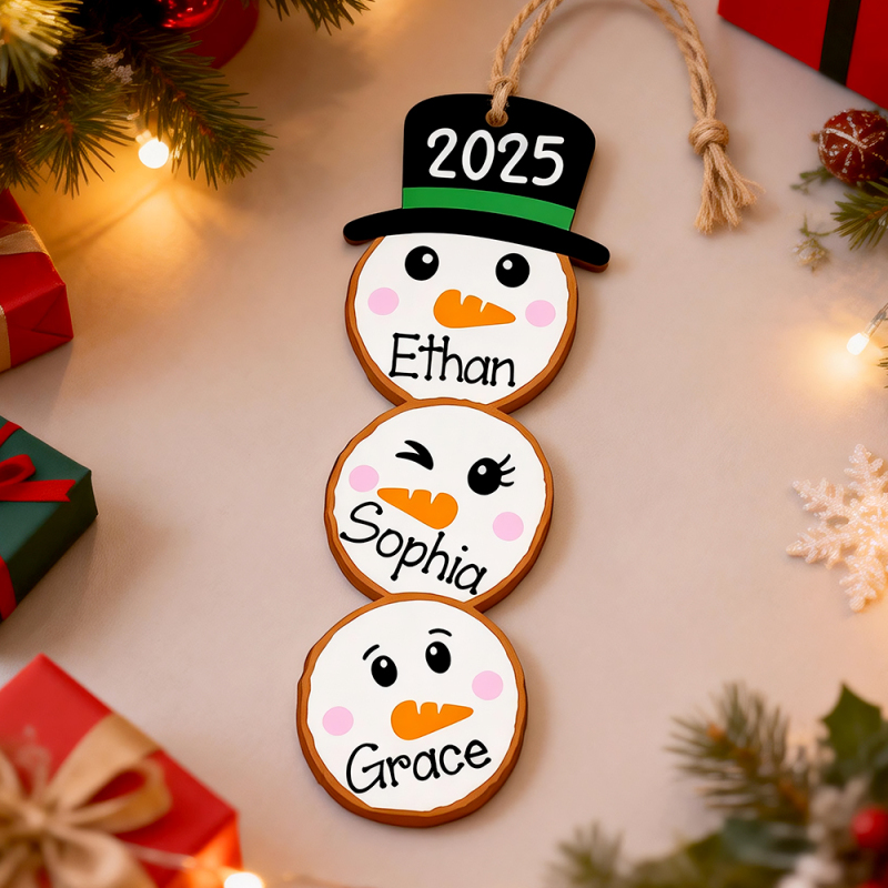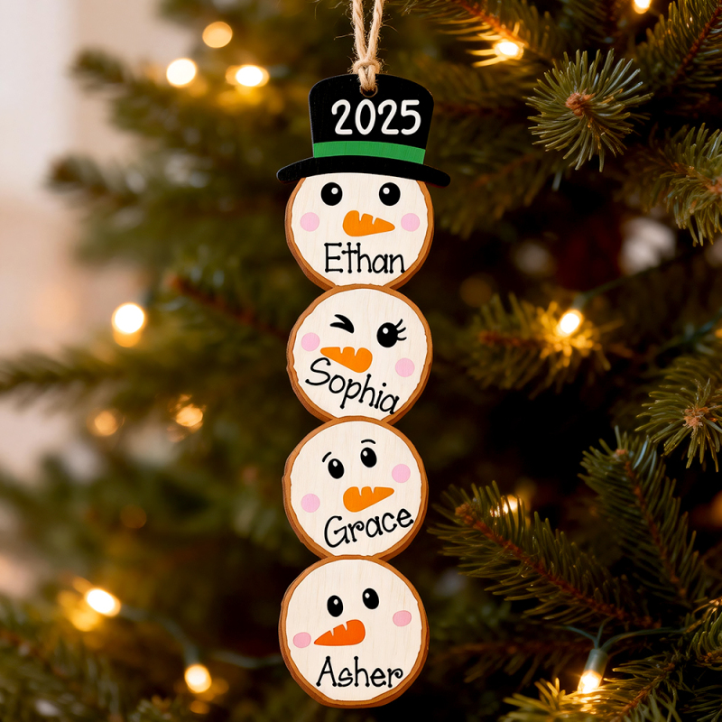 Introducing our adorable Custom Name Snowman Christmas Ornament for 2025 – the ultimate way to celebrate your family's unique story this holiday season! ️ This isn't just any ornament; it's a personalized piece of joy, featuring a charming, hand-crafted snowman design that can be beautifully customized with your family's surname.