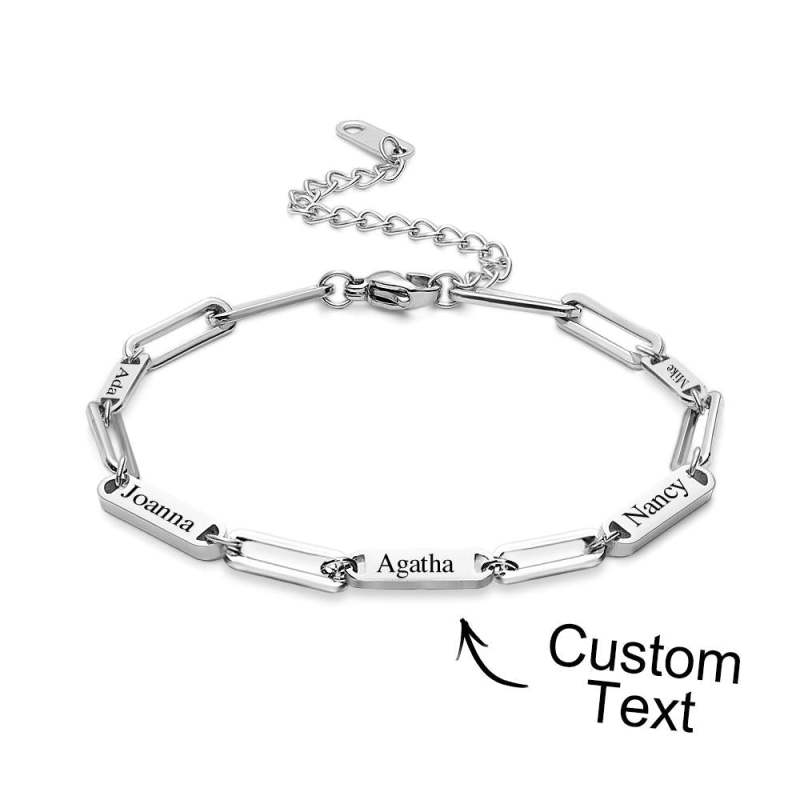 Let mom and grandma know how much they mean, by gifting them a Custom Names Bracelet! Choose from three bold hues, and engrave up to seven names. Square shape joint connecting bracelet constructed in stainless steel for lasting wear. Celebrate family with an unforgettable gift!