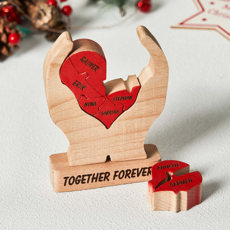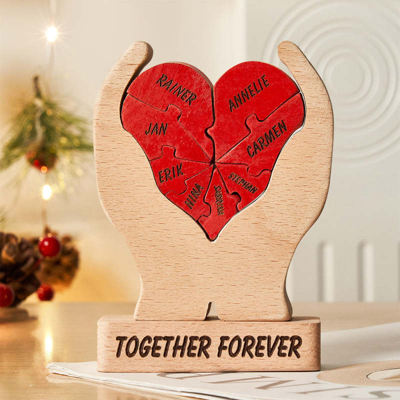 These wooden family puzzle are ideal for home, office and cafe decor. Each expertly shaped piece brings a special family member and their love to life, making it a great surprise gift for any celebration.