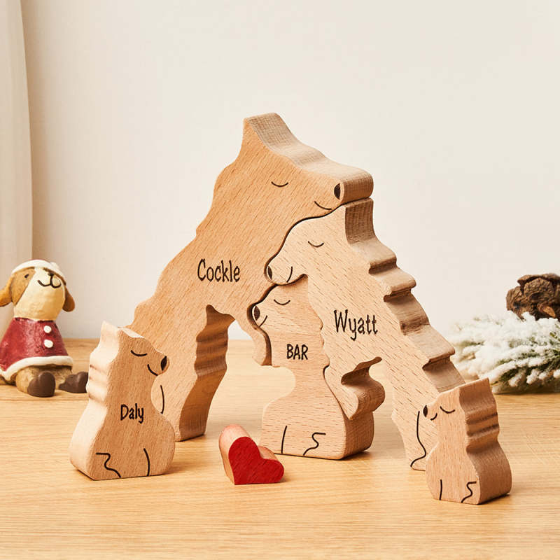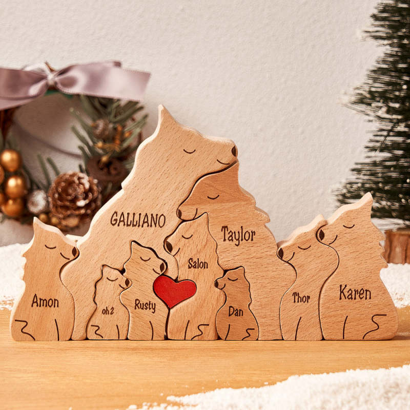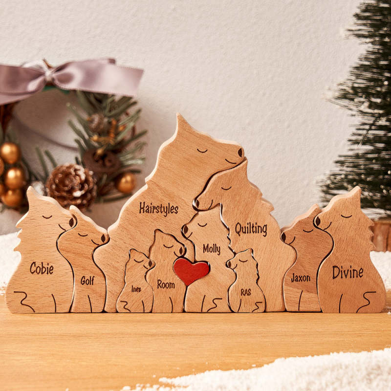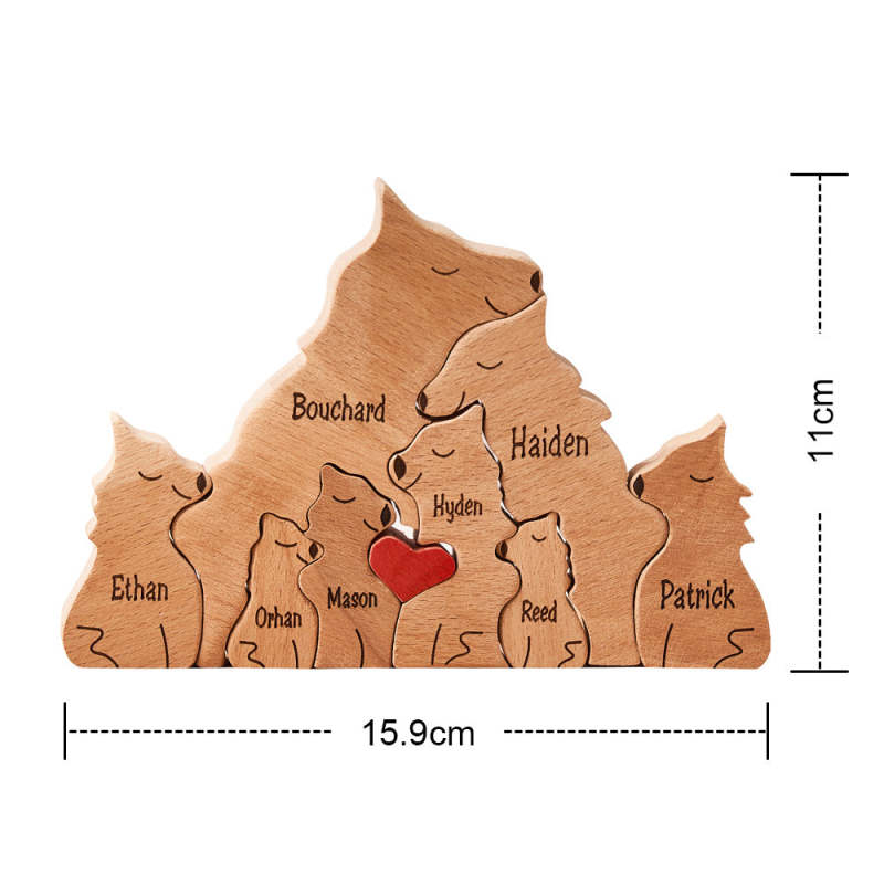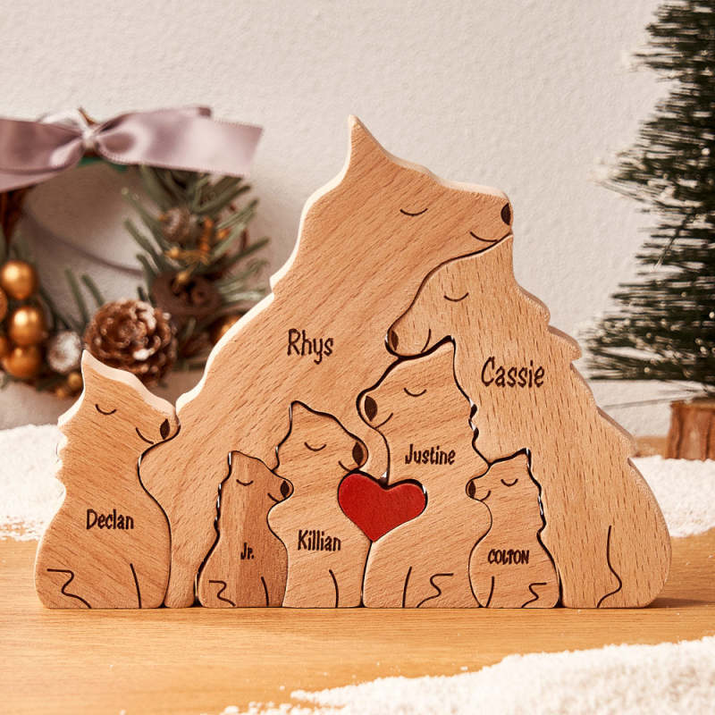 Custom Names Wooden Wolf Family Puzzle Home Decor Mother's Day Gifts