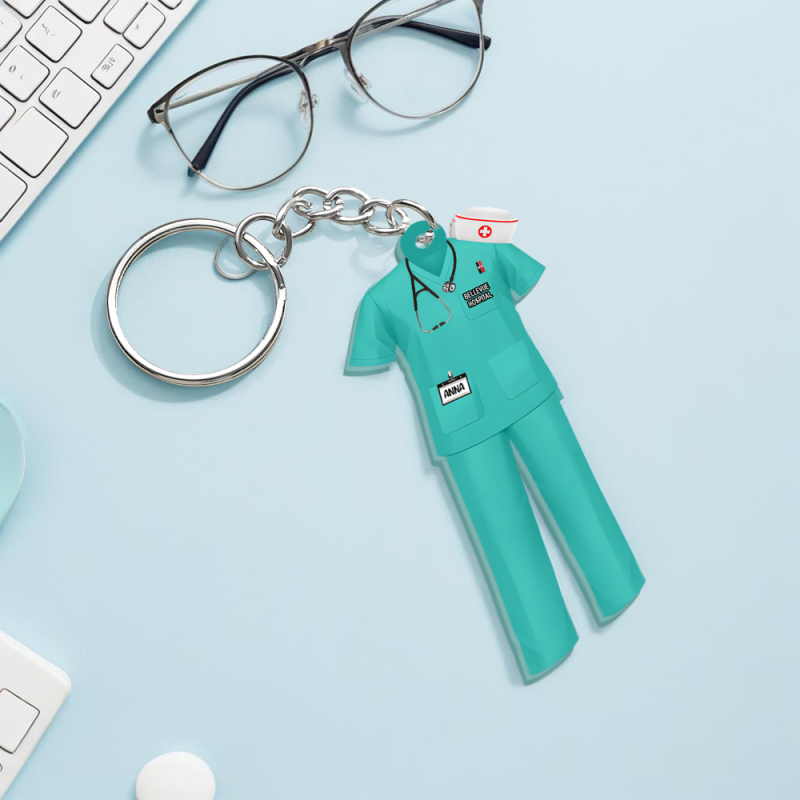 Custom Nurse Uniform Personalized Acrylic Keychain With Text Unique Gift For Nurse
