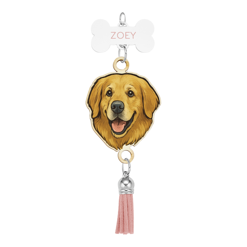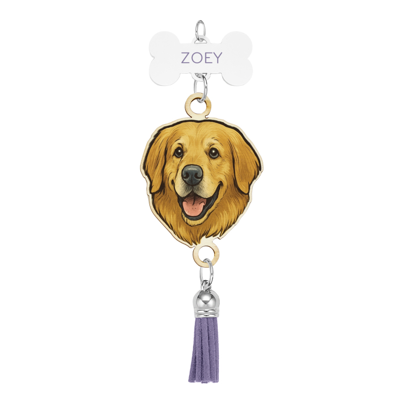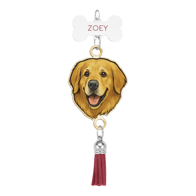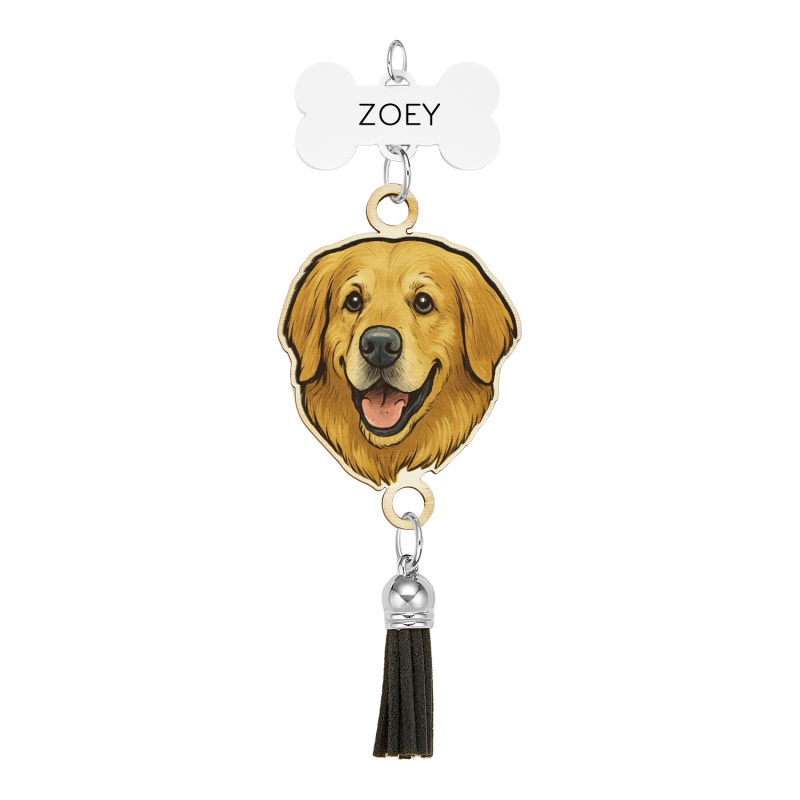 Custom Pet Photo Portrait Rear View Mirror Charm Car Accessory Painted and Engraved Personalized Pet Memorial Gift