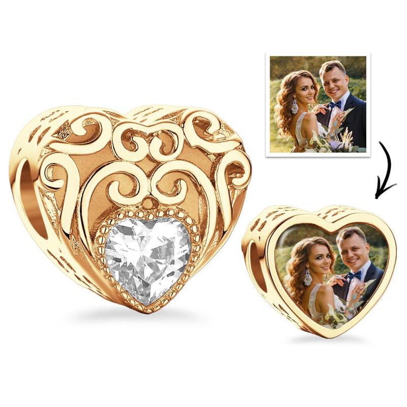 Custom Photo Birthstone Charm Heart Shaped Hollow Out Jewelry Gifts For Her