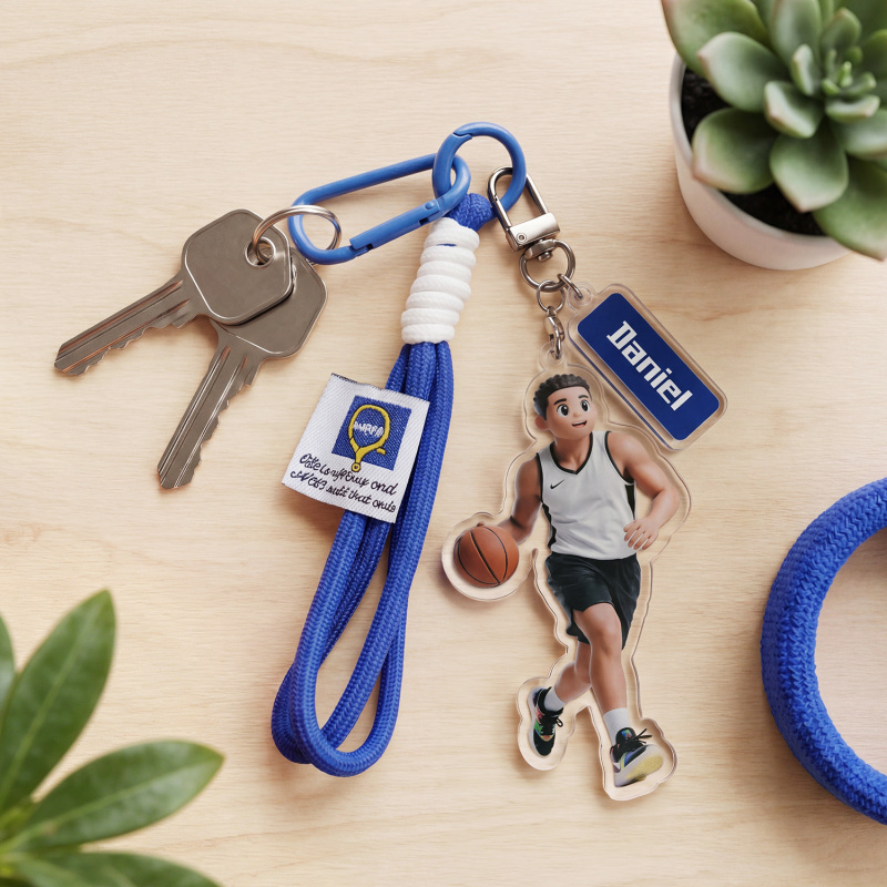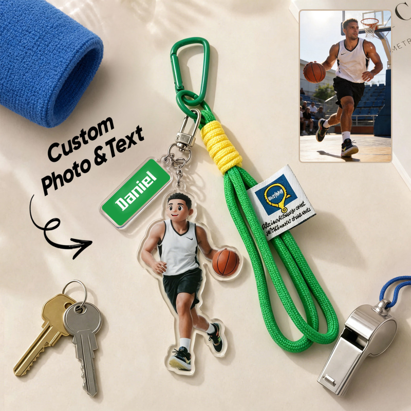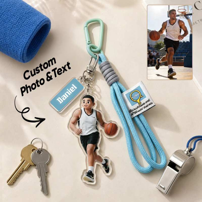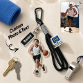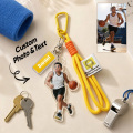 Turn your favorite sports moments into a personalized keepsake with this custom cartoon portrait keychain. Featuring a caricature-style illustration based on your photo, plus a custom name engraving, it's the perfect bag charm for athletes, coaches, and sports fans.