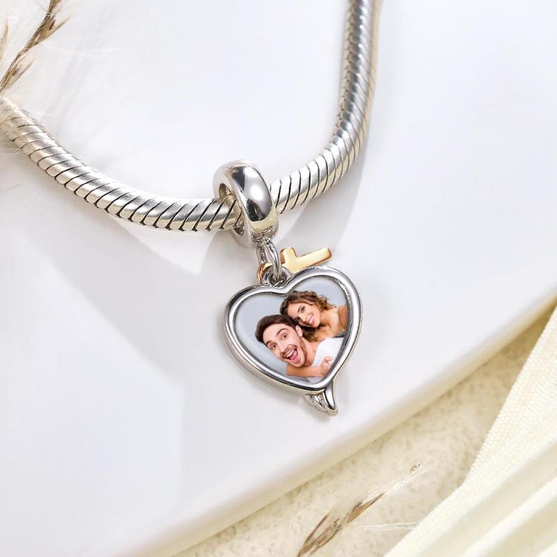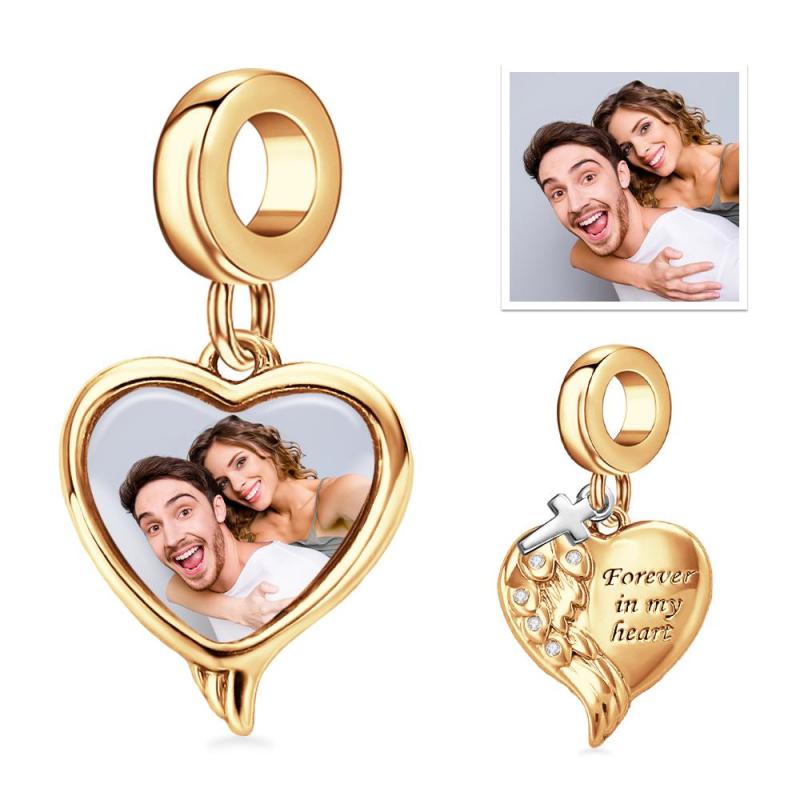 Custom Photo Charm Angel Wing Heart Cross Couple Gift