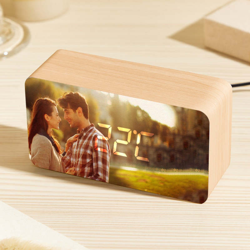 This custom photo wooden alarm clock is the perfect gift for any celebration, whether it's a housewarming, graduation, birthday, anniversary, or just a special treat for yourself. With the ability to print your own photo and personal text on the clock, it's a truly unique and personalized gift.