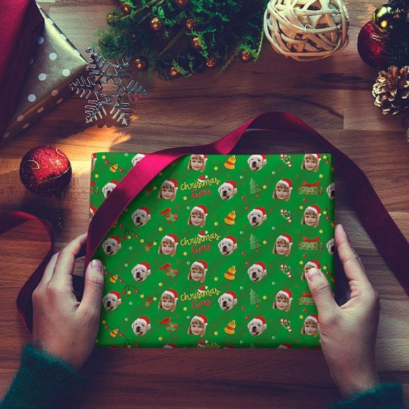 Custom Photo Face Merry Christmas Wrapping Paper