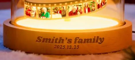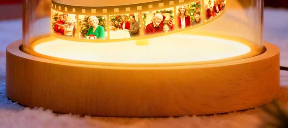 A modern twist on Christmas nostalgia — the Classic Film Tree Light transforms your favorite memories into a glowing reel of joy. Each spiral of film captures your cherished photos, wrapping them into the shape of a Christmas tree under a crystal-clear dome.