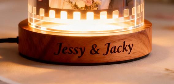 You have full creative control. Upload distinct photos to the top and bottom film layers to craft a unique, dimensional scene. Add a meaningful personalized text—a name, a date, or a secret phrase—to make the memory uniquely yours. For an extra touch of elegance, select engraving on the base to etch your message permanently.