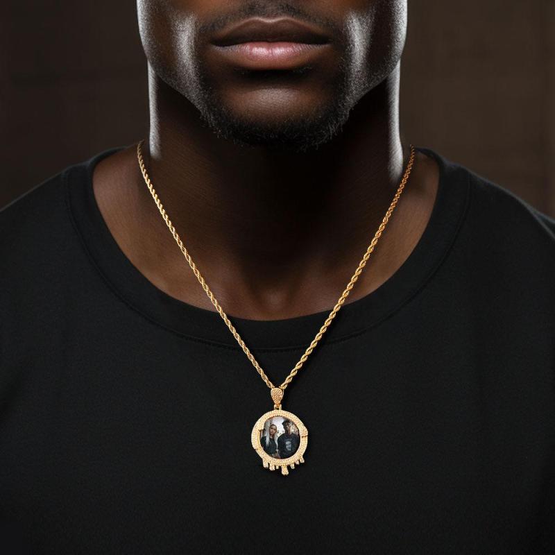 Custom Photo Hip Hop Necklace Water Drop Shaped Exaggerate Pendant Jewelry Gifts For Men