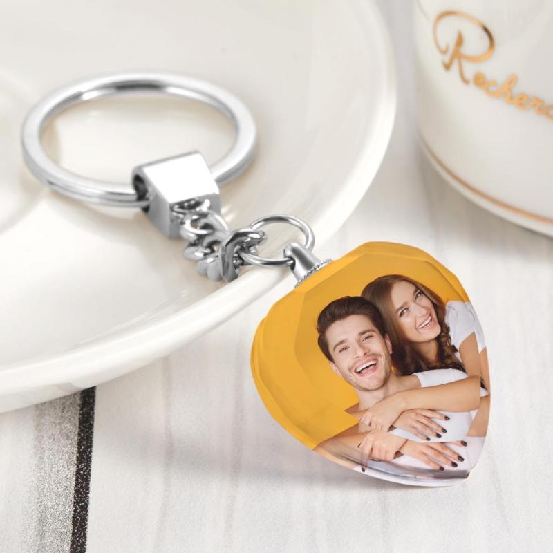 Custom Photo Keychain Crystal Keychain Couple S Gifts Two Pictures Heart Shaped