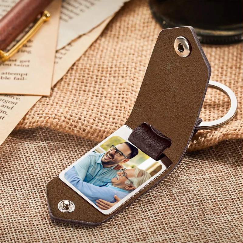 Custom Photo Keychain Engraved Keychains Leather Gifts For Father
