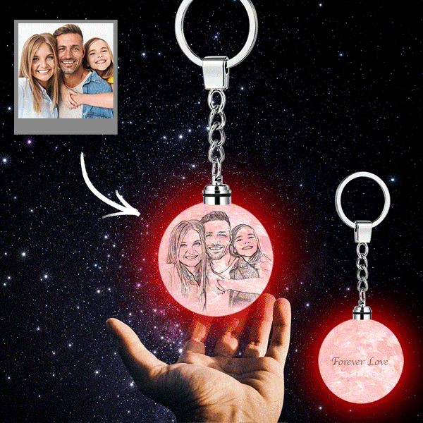 Custom Photo Moon Lamp Keychain 3D Printed Colorful Gifts for Family