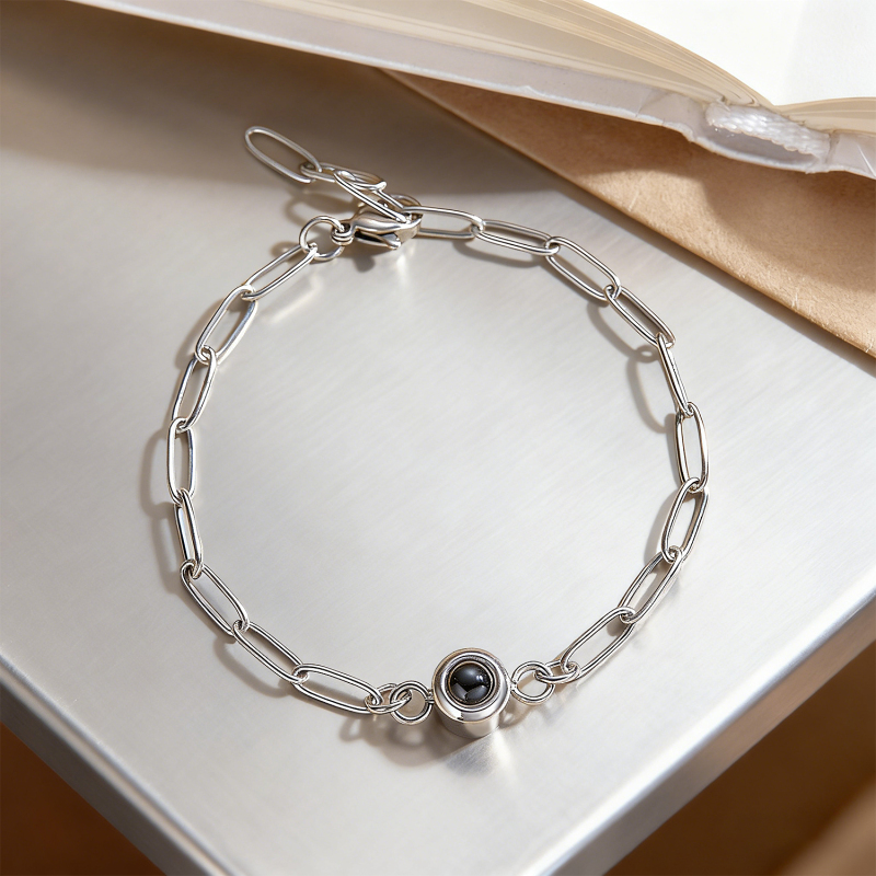 Turn precious memories into wearable magic with this Custom Photo Projection Bracelet—a stunning round projection jewelry piece that’s the best Christmas gift for her! The bracelet features a sleek round pendant that holds a hidden custom photo; shine a light through it, and the image (like a family snap, couple portrait, or special moment) projects clearly, turning everyday wear into a heartfelt reminder.