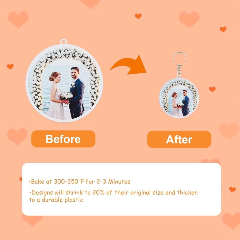 Our custom photo shrink sheets serve as excellent DIY crafting materials, helping you create unique, personalized keepsakes and gifts! Whether you are a seasoned crafter or a complete beginner, these high-quality, non-toxic shrink plastic sheets allow you to transform your cherished photos into exquisite, durable miniature treasures.
