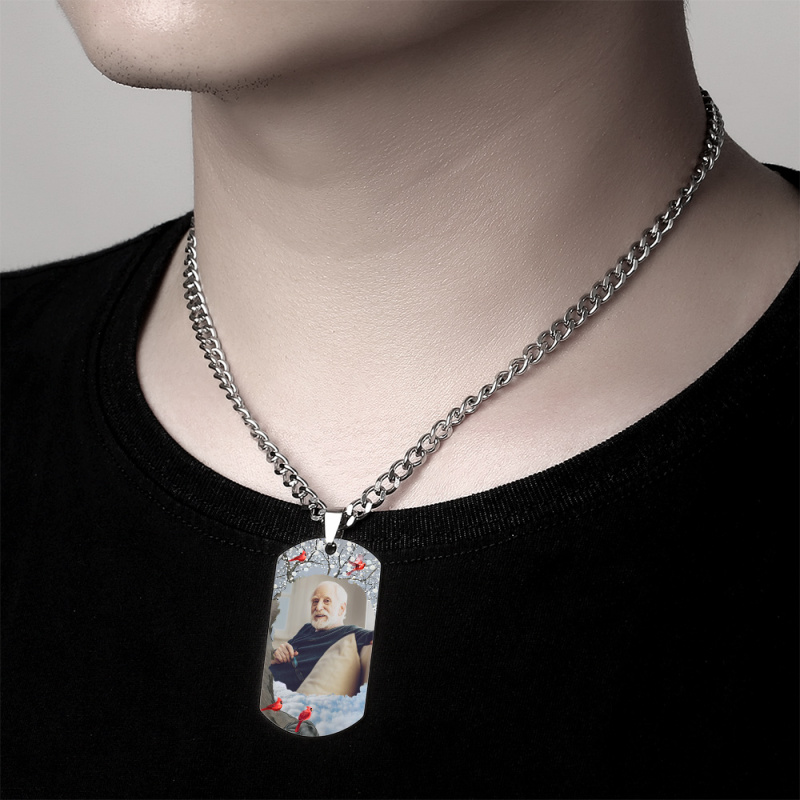Made from high-quality metal, this necklace showcases a sleek and durable design. The metal surface has a refined texture, adding a touch of elegance to the overall look. Whether worn casually or for a special occasion, it is a meaningful accessory that allows men to carry their memories close to their hearts.