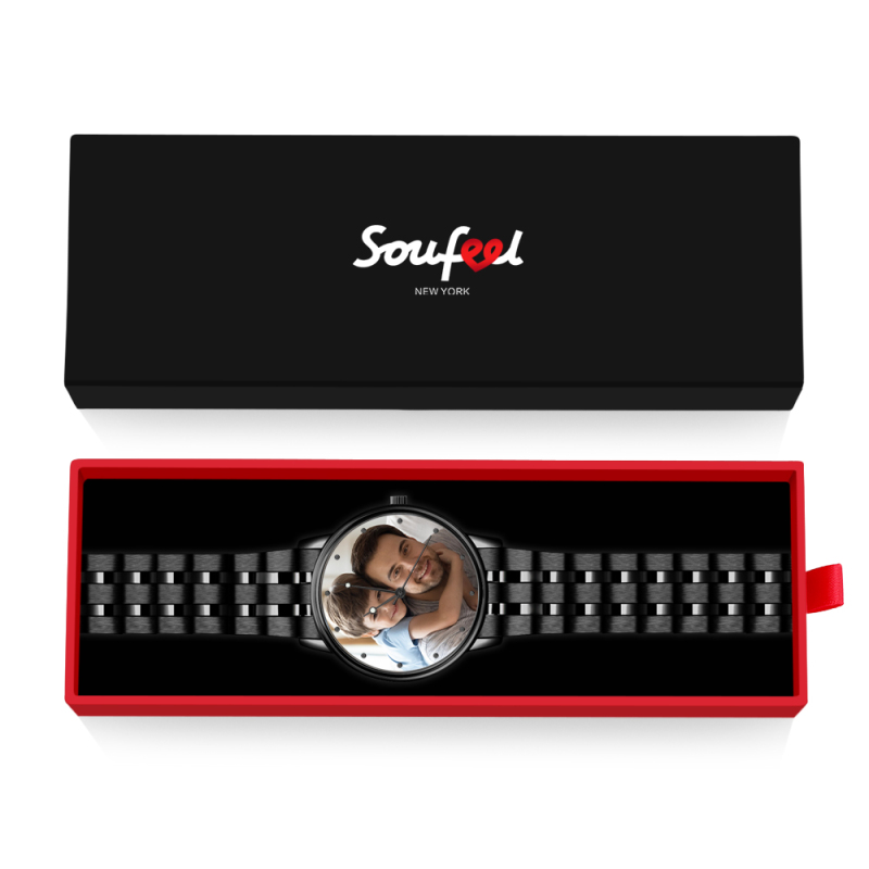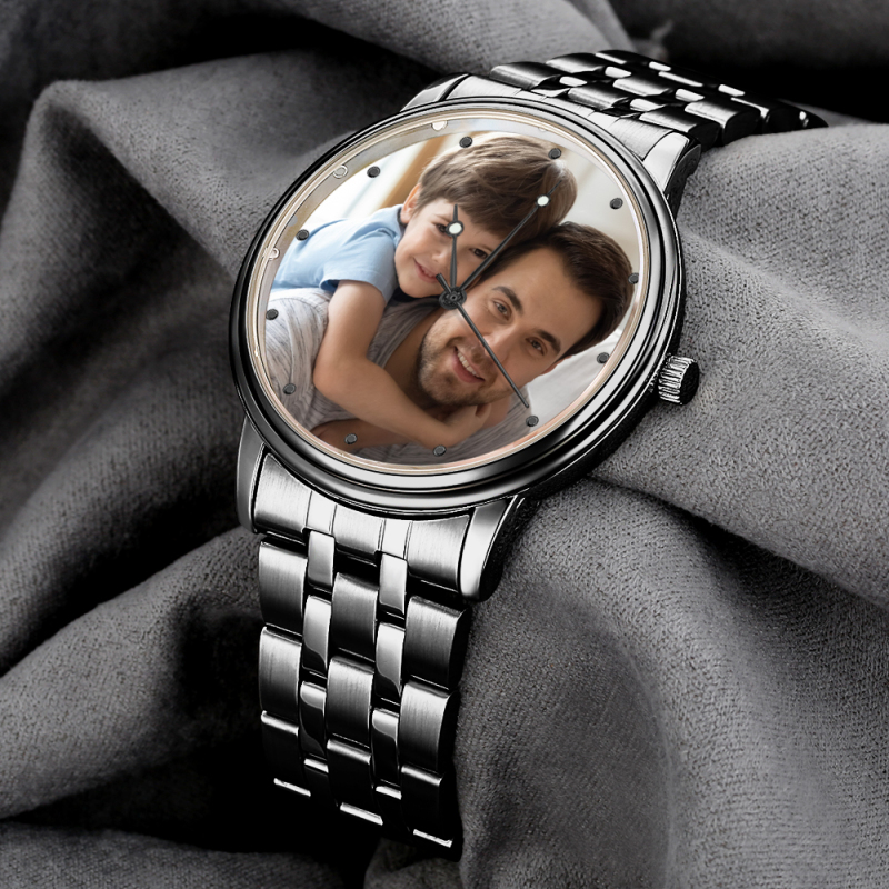 Custom Photo Watch Men's Black Alloy Bracelet Holding Hands Engraved Name Watch Father's Day Gift For Dad