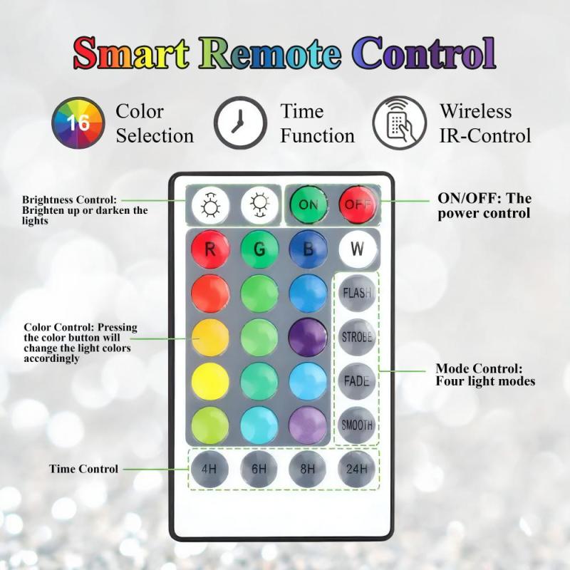 Remote control: You can use the remote to turn the lights on and off, 16 different color lights and 4 different light animation modes.