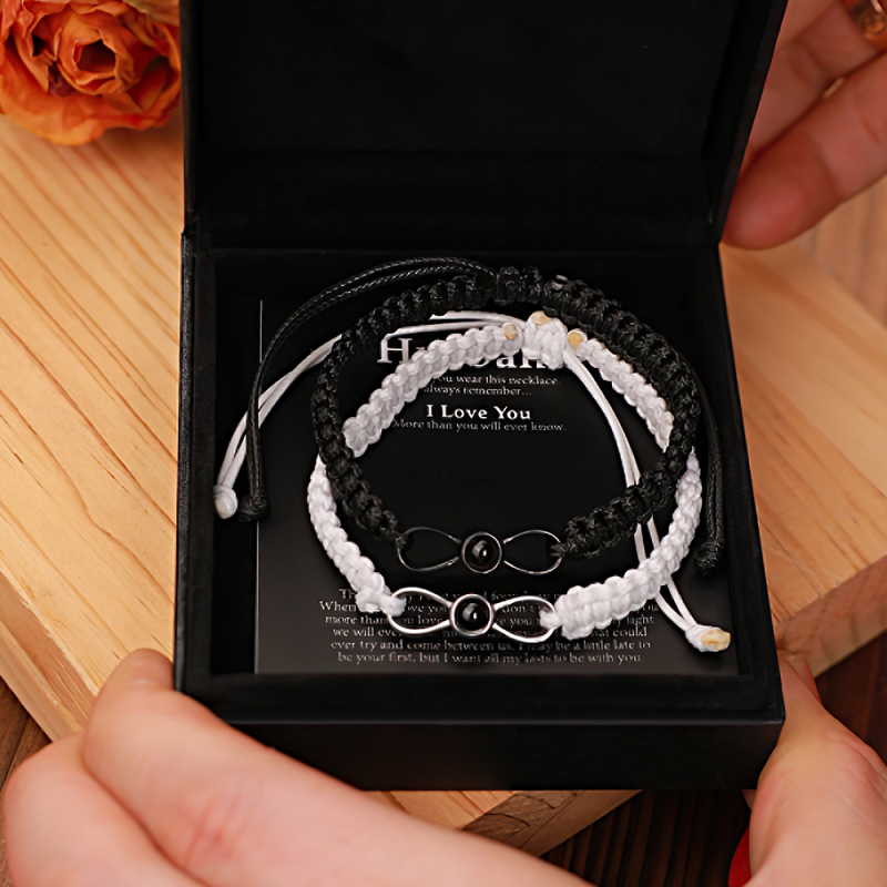 Personalized Projection Weave Bracelet Customized Photo Bracelet Set Adjustable Bracelet Personalized Gift for Couples