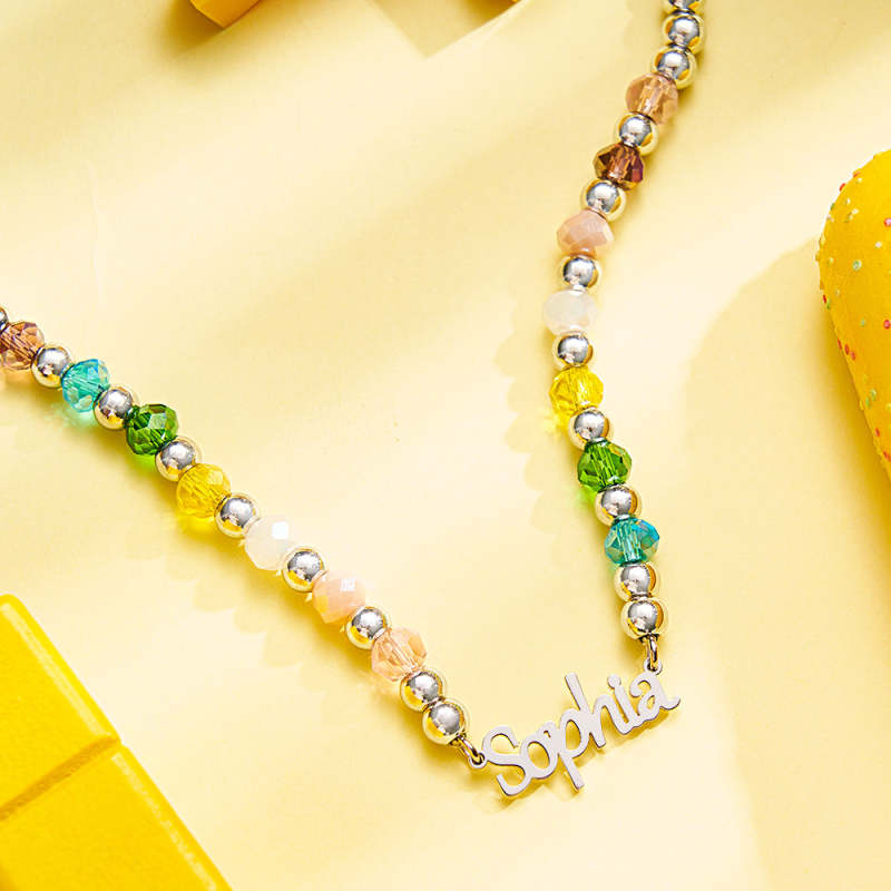 Made with high-quality materials, our Custom Rainbow Beaded Name Necklace is durable and lightweight, making it comfortable for kids to wear all day long. Whether they're headed to the beach, a playdate, or a summer party, this necklace is sure to make a statement and showcase your child's unique personality.