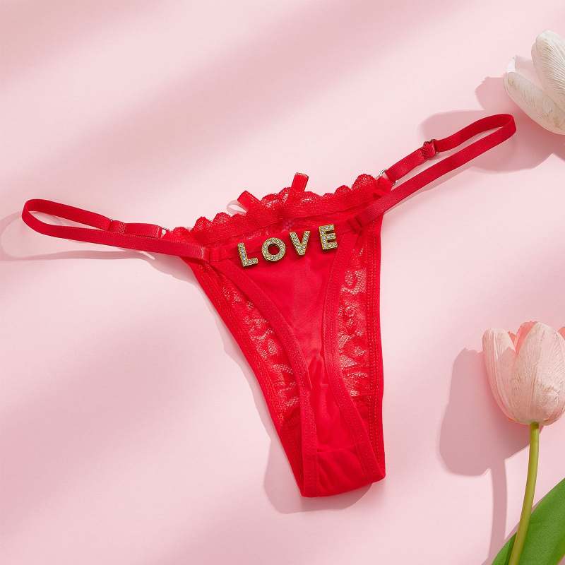 Elegant Rhinestones: The sparkling rhinestone letters add a touch of glamour, making these panties a standout piece in your lingerie drawer.