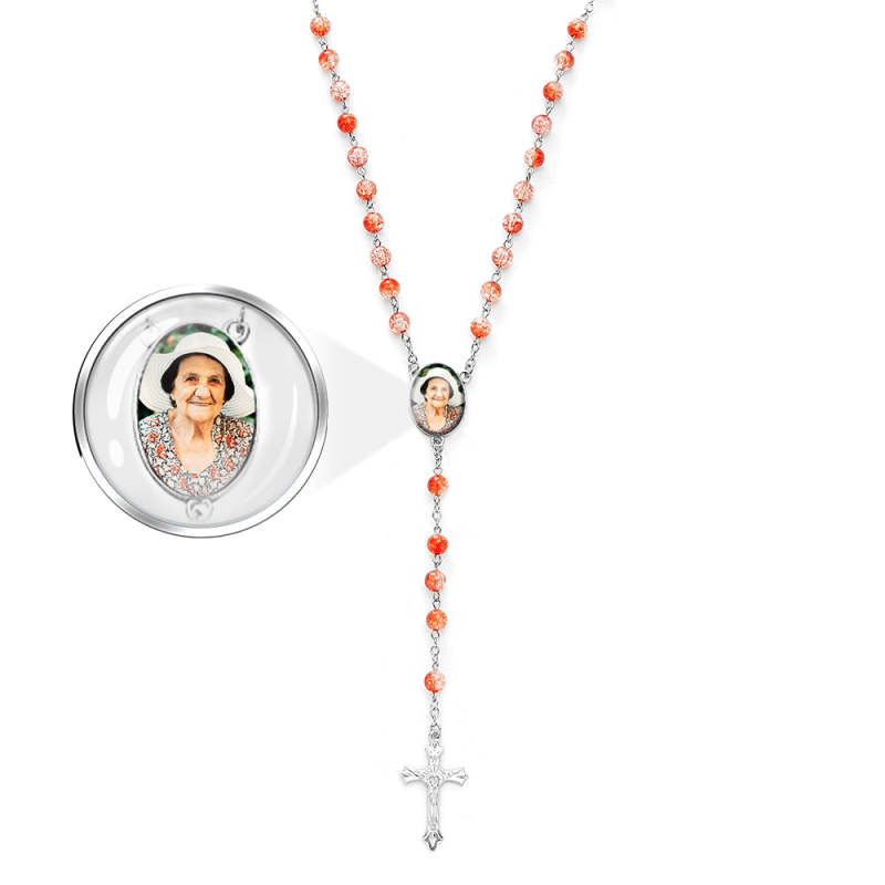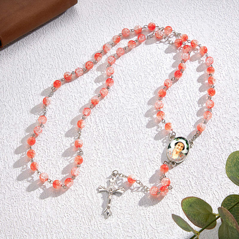 Custom Rosary Beads Cross Necklace Personalized Acrylic Explosion Beads Necklace with Photo