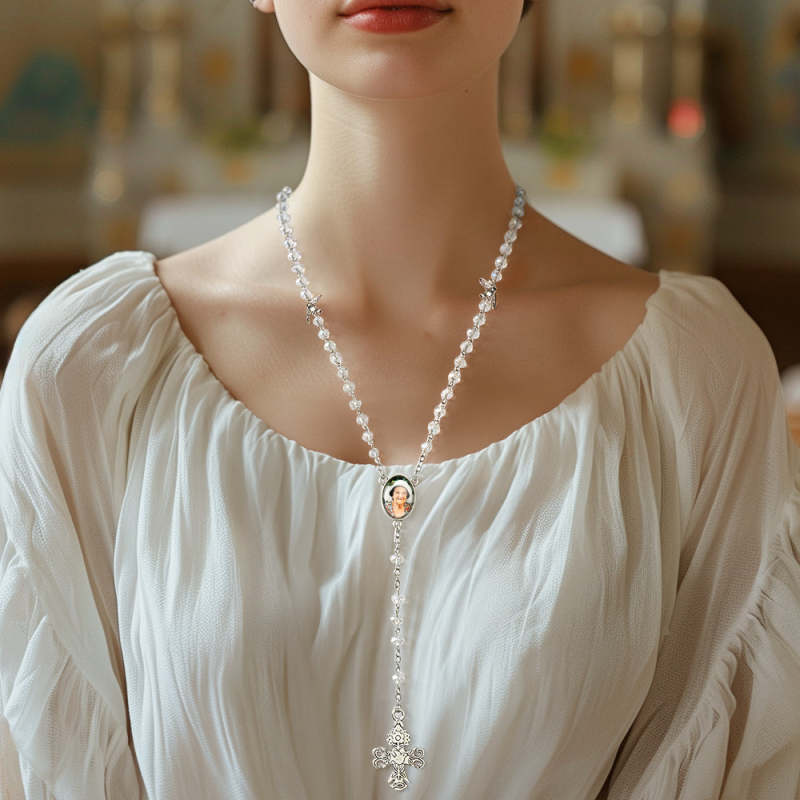 Personalized Elegance: Crafted with precision, this necklace is adorned with a customizable cross, making it a truly unique and meaningful accessory. Add a personal touch with a photo pendant, transforming it into a cherished memorial gift.
