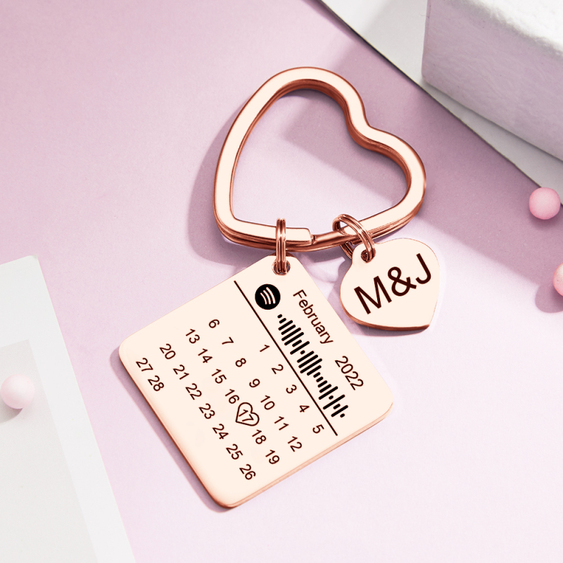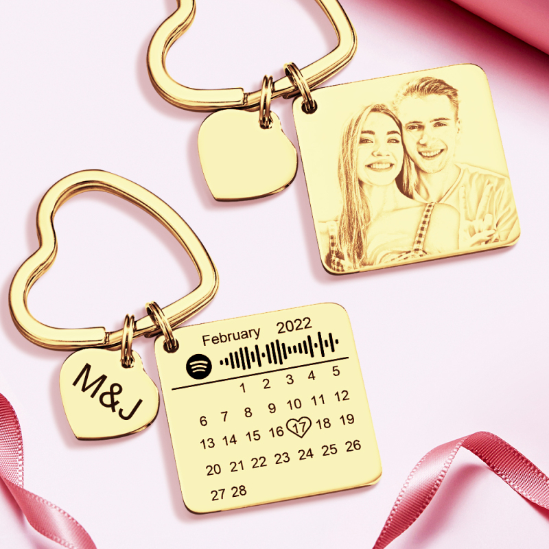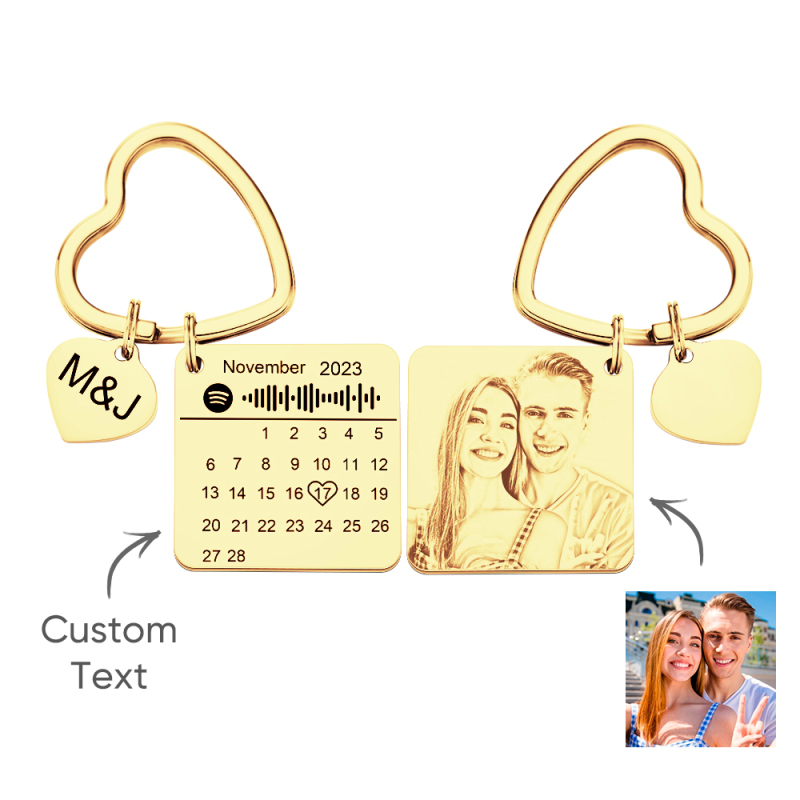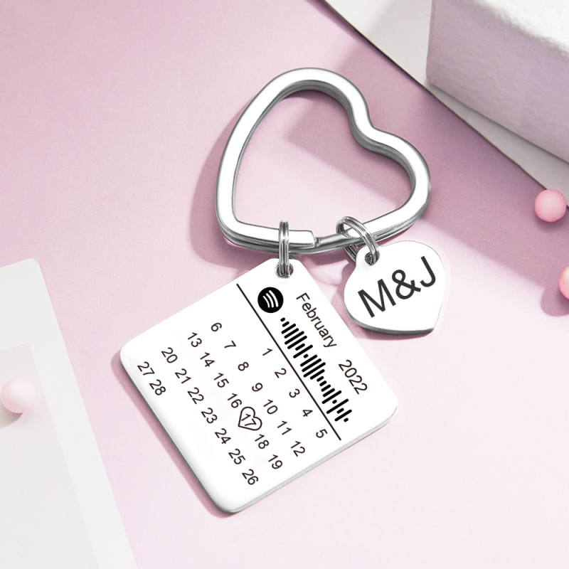 Custom Spotify Calendar Custom Calendar Photo Keychain Anniversary Gifts Heart Shape Keychain Couple Gift