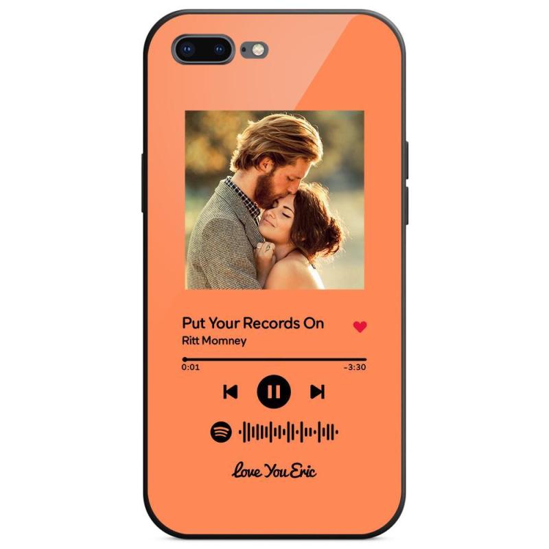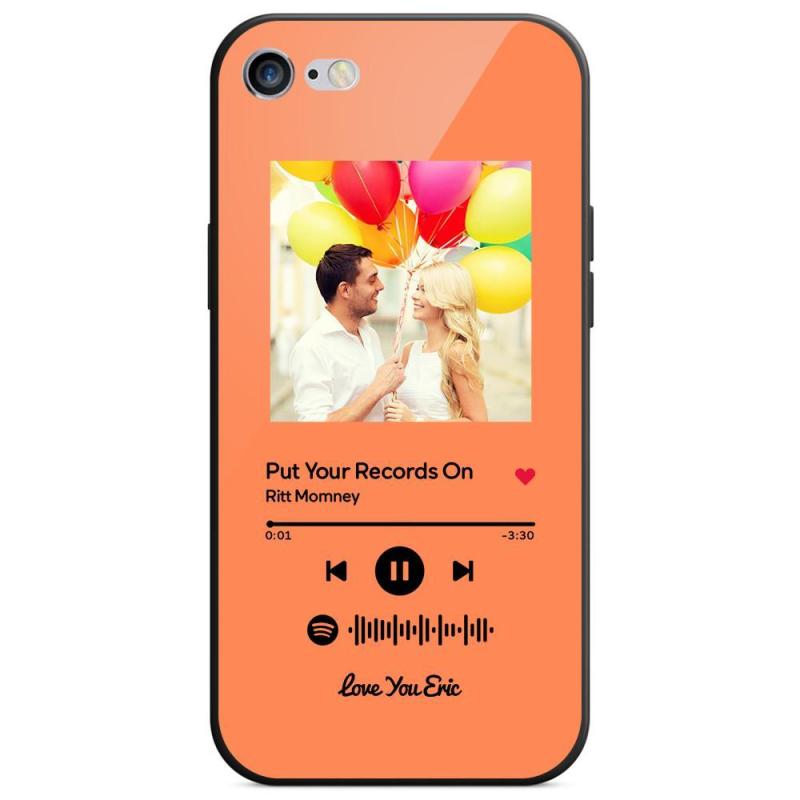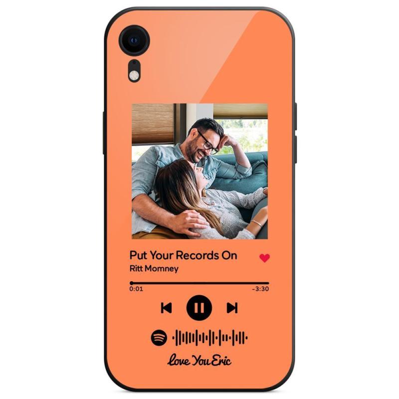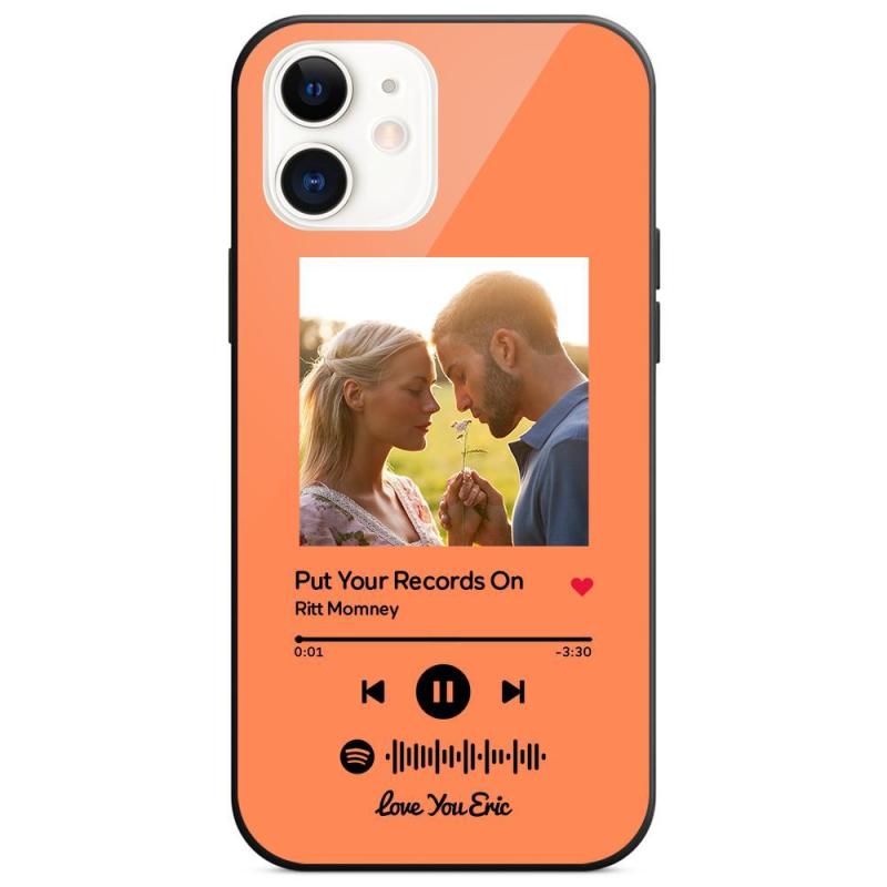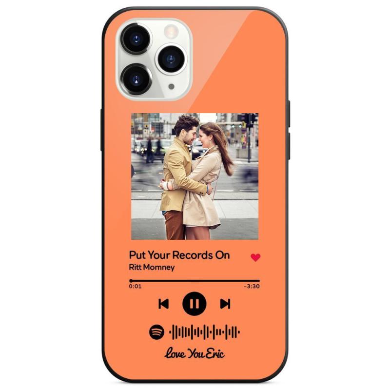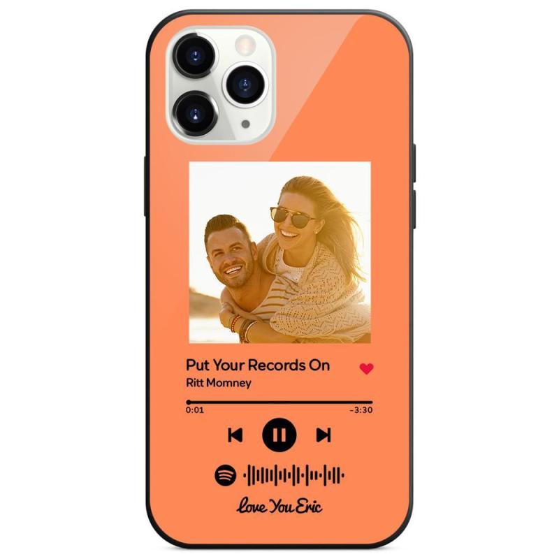Custom Spotify Code Music iPhone Case with Text Scannable Engraved Custom Music Song Tempered Glass - Orange