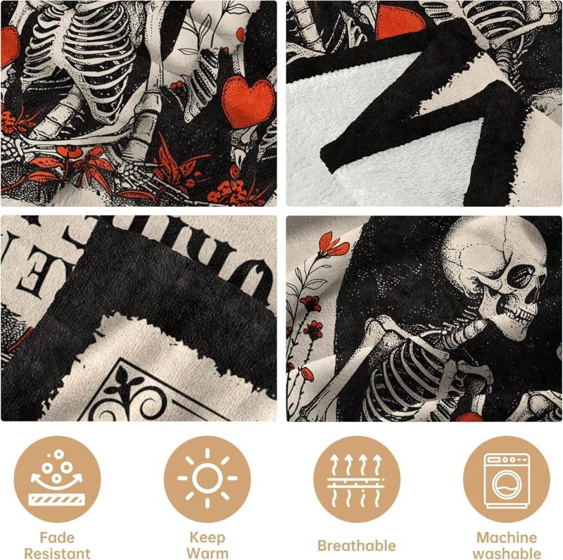 [Romantic Gifts for Her or Him]: This blanket is a unique way to remind your loved one how much you love and cherish them. The image of skeleton couples symbolizes deep love and eternal commitment, highlighting that love endures even in the face of mortality. Let it serve as a constant reminder of the warmth and affection you bring into each other’s lives