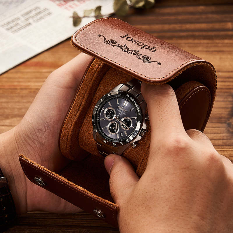 Crafted with precision and sophistication, this organizer combines functionality with timeless style. The PU leather exterior exudes elegance, while the customized touch adds a personal flair. With individual compartments, this roll storage box keeps his cherished timepieces organized and protected. Whether for travel or daily use, its compact design ensures convenience without compromising on luxury. Elevate his watch collection with this thoughtful and practical gift, showcasing your attention to detail and commitment to quality.