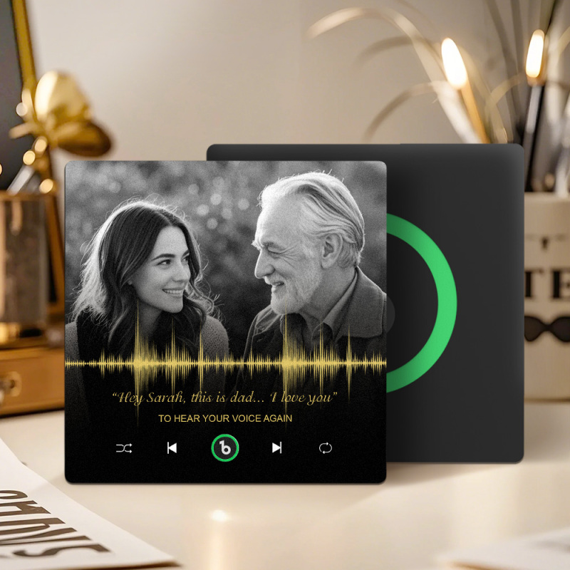 Capture the voices and moments you cherish most with this customizable fridge magnet. Record or upload audio to play anytime—keeping loved ones close, even when they're far away.