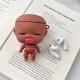 A 2-in-1 silicone earphone case & squeeze toy featuring a dark-skinned doll design. The doll's head functions as a protective wireless earbuds case, while the detachable body doubles as a squishy stress-relief toy.