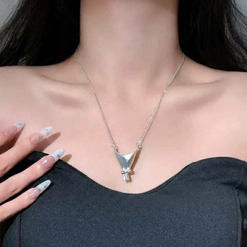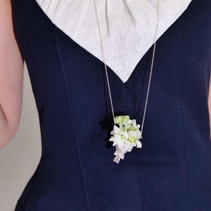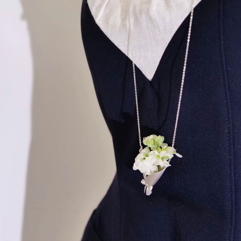 Inspired by the idea of a “bouquet frame”, the designer leaves the final touch to you. This necklace invites you to complete your own creation: place a small flower from the morning market into the pendant, and change it with the seasons — a wild daisy, a sprig of mint, a lily of the valley, or even a dried twig.